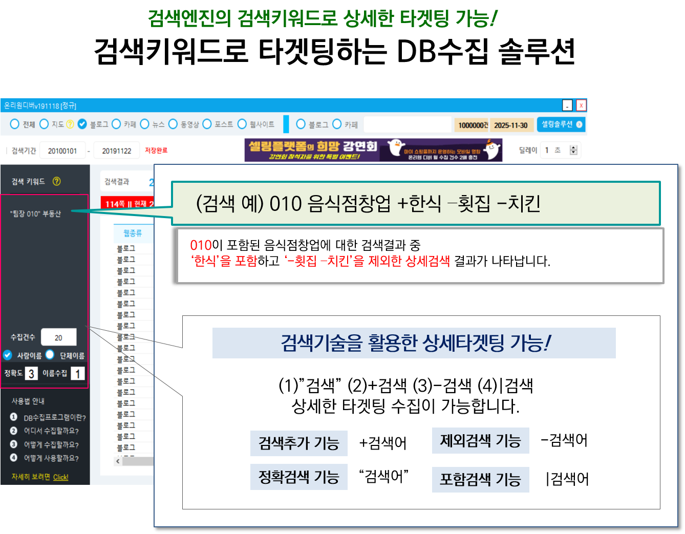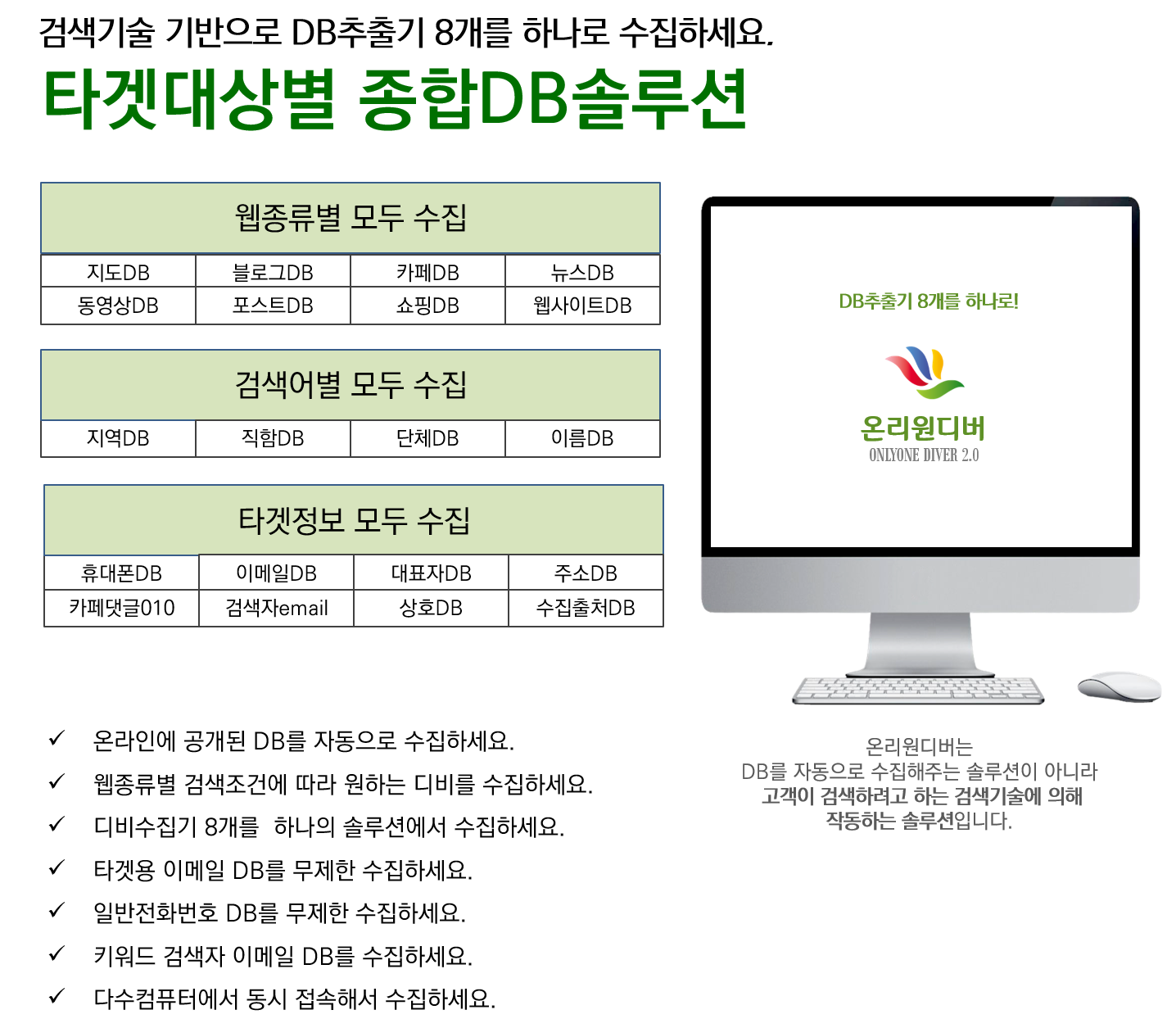 알고리즘을 통해 타겟에 맞는 맞춤 DB로 추출하는 합법적인 프로그램입니다.